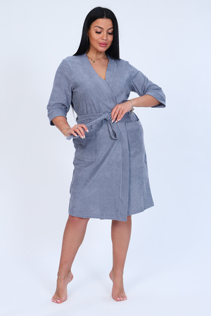Халат женский на запах выполнен из махры - натуральной ткани, на 80% состоящей из хлопка, с поясом и накладными карманами. Халат отлично подойдет как для дома, так и для бани, и для сауны или бассейна. Домашний халат - удобная и стильная удлиненная модель отлично впитывает влагу, дышит и очень приятен к телу. Такой халат - отличный подарок для любимых женщин, теплый халат, в котором будет комфортно! Рост модели на фото 164см, размер 48