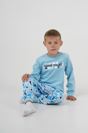 Удобная стильная пижама для мальчика от ТМ Let's go состоит из джемпера с длинным рукавом и брюк. Комплект выполнен из натуральной качественной кулирки. Хлопок позволит коже дышать, сохранит тепло, а также впитает влагу, что очень важно для кожи ребенка. Пижаму можно использовать как одежду для сна или как домашний костюм, в котором вашему малышу будет необычайно уютно и удобно. Благодаря такой одежде сон ребёнка будет максимально комфортным и спокойным. Пижамный костюм пошит в свободном стиле, без карманов, для полного комфорта во сне или для игр в домашней обстановке. Штаны прямого кроя на манжете. На кофте современный принт, элементы рисунка светятся в темноте. Изделие не вытягивается при носке и не садится после стирок, не мнется и устойчиво к образованию катышек. Эластичные манжеты не препятствуют движениям. Для того чтобы правильно определить размер, перед оформлением заказа рекомендуем обратиться к размерной сетке.