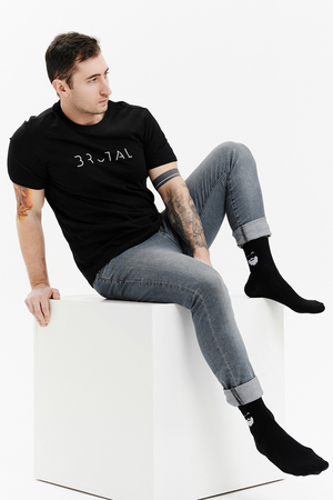 Подарочный набор "БРУТАЛ". Черная мужская футболка с принтом и носки с принтом подчеркнут вкус и чувство юмора. Подарочный набор упакован в крафтовую коробку с тематическим принтом. Футболка из 100% хлопка подойдет для повседневной носки и для выхода из дома. Мужская футболка подойдет для занятий спортом и для активных прогулок. Футболка будет отлично сидеть практически на любой фигуре. Носки подойдут к любой одежде и обуви. Изготовлены из высококачественного хлопка, который отлично впитывает влагу, пропускает воздух и подходит даже для самой чувствительной кожи. Хорошо сохраняют форму и цвет, устойчивы к истиранию. Подарочный набор "БРУТАЛ" будет отличным подарком второй половинке, близкому другу, отцу и дедушке. Рост модели на фото 183 см, размер 52. Размер носков 40-47.