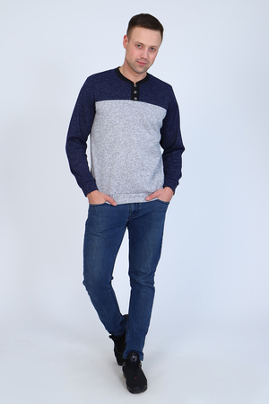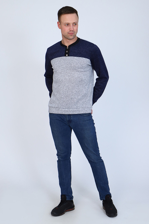Модный и стильный мужской джемпер, длинный рукав на манжете. V-образный воротник на пуговицах. Низ изделия также на манжете. Удобно и практично.
