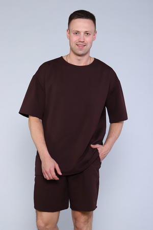 Классный лаконичный костюм для мужчин, футболка спущенный рукав, свободный крой, удлиненные шорты, кокетка сзади, свободного кроя с карманами.