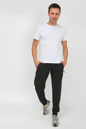 Спортивные мужские брюки, отличного качества. Пояс на резинке, средняя посадка, низ изделия на манжете, два боковых - декоративных кармана на молнии. Подойдут для спорта, отдыха, повседневной носки.