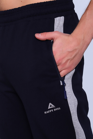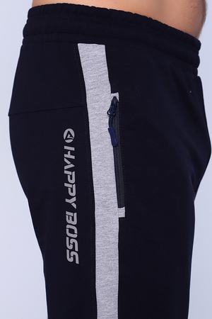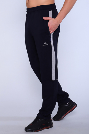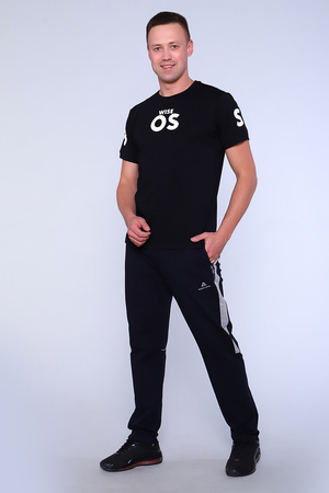 Брюки мужские прямые изготовлены из качественной износостойкой ткани на кокетке. Пояс на резинке дополнен шнурком с внутренней стороны. Боковые карманы на молнии. Возле кармана печать-логотип. По боковому шву отделка вставкой из контрастной ткани. Стильные брюки сзади дополнены буквенной печатью справа и контрастным кантом под коленями. Обладатели повседневных универсальных брюк ощутят комфорт и свободу движения при выполнении домашней работы, занятий спортом и в туристических походах.