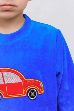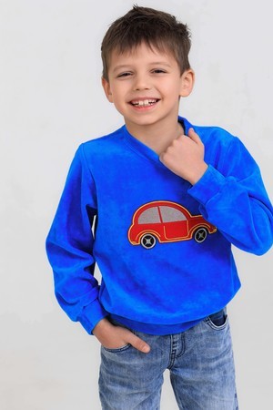 Свитшот велюровый для мальчика. Представлен в двух цветах: голубой и васильковый. Отделка низа изделия, манжет, горловины выполнена из основной ткани. Кофта декорирована аппликацией методом вышивки в виде машинки. Цвета аппликаций могут отличаться от фотографии. Свободный крой не сковывает движений. Отсутствие дополнительных элементов, например, капюшона позволяет легко надеть нашу модель под куртку. Свитшот выглядит очень лаконично, поэтому ребёнок будет себя комфортно чувствовать как на празднике, так и в повседневной жизни. Его можно надеть в сад, на прогулку, пойти в нём в торговый центр или надеть его в путешествие. Желаем приятных покупок с брендом Modestreet.