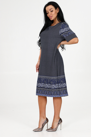 Элегантное женское платье, прямого силуэта, округлый воротник. Рукав 3/4 на патах. Удобно и практично