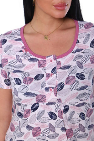 Женская сорочка на пуговицах. Сорочка выполнена из нежного трикотажа кулирка. Горловина окантована тканью компаньон. Кокетка отрезная на пуговицах. Идеальный вариант для беременных, кормящих. Низ в подгибку.