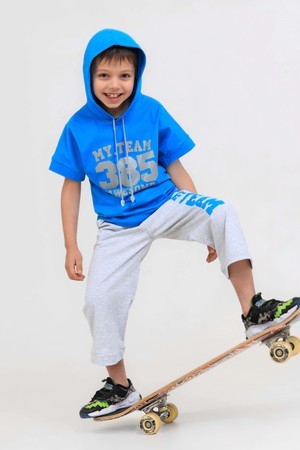 Стильный детский спортивный костюм с шортами бермудами и футболкой со спущенным плечом. Подходит в садик для мальчиков и девочек или в школу на занятия физкультурой. Комплект отлично подойдет для детского сада, школы, дома, летних прогулок или спортивных секций. Выполнен из мягкого трикотажа - кулирки, состав: хлопок 95% лайкра 5%. Приятный к телу, дышащий материал, устойчив к частым стиркам, не вытягивается и держит форму. Спортивный костюм для детей можно стирать в стиральной машине при 30 градусах. Пояс прошит с резинкой, благодаря этому не будет перекручиваться. Модные в этом сезоне шорты бермуды длиной до колен, отлично смотрятся и на мальчиках и на девочках. Покрой оверсайз выглядит современно и актуально.