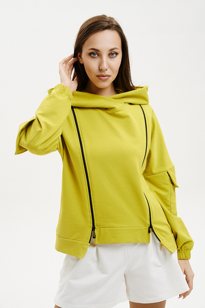 Женская толстовка с двумя молниями, капюшоном, карманами на рукавах. Свободного силуэта для тех, кто ценит комфорт.
