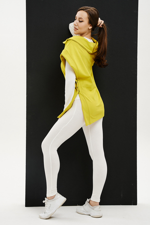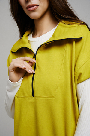 Жилет женский свободного силуэта. Фиксируется кнопками по бокам. Объемный жилет прекрасно подходит на водолазку, а в сочетании с леггинсами сделает ваш образ стильным и уютным. Жилет будет хорош для прогулки осенними и весенними вечерами.