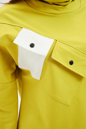 Толстовка женская свободного кроя. Оригинальная дизайнерская вещь, никого не оставит равнодушным. Два кармана с клапанами на кнопках расположены по диагонали. Объемный воротник.