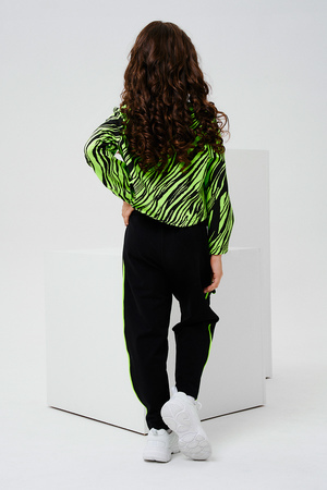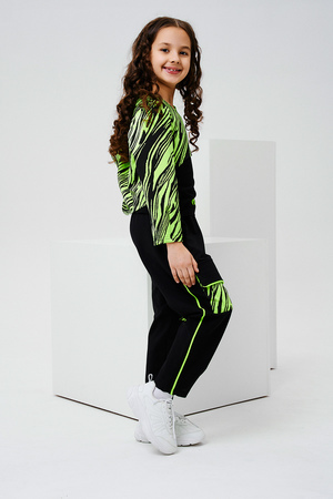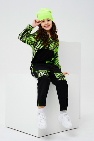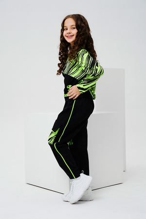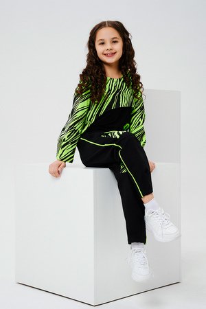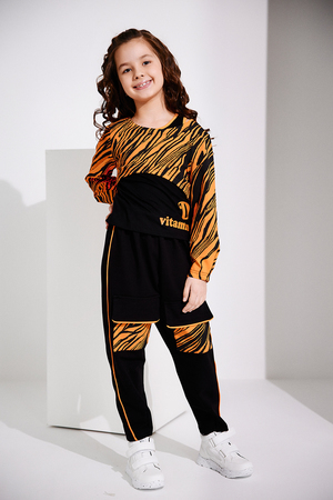 Стильный детский спортивный костюм для девочек(весна-лето), состоит из майки, лонгслива и брюк (джоггеров). Лонгслив укороченный свободного кроя с длинными рукавами, дополняется удлинённой майкой с ярким печатным принтом. Штаны - джоггеры свободного кроя на широком эластичном поясе. На передних половинках брюк накладные карманы с клапанами. Боковые швы и низ клапанов оформлены ярким кантом. Комфортный костюм, удобен в носке и подойдет на каждый день для повседневного использования, активного отдыха и спорта. Рекомендована деликатная стирка не выше 30 градусов. Состав по тканям: футер 2-х нитка с лайкрой хлопок 72%, ПЭ 20%, эластан 8%, кашкорсе: вискоза 92% лайкра 8%; кулирка с лайкрой: хлопок 95% лайкра 5%