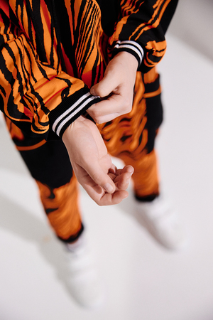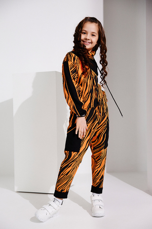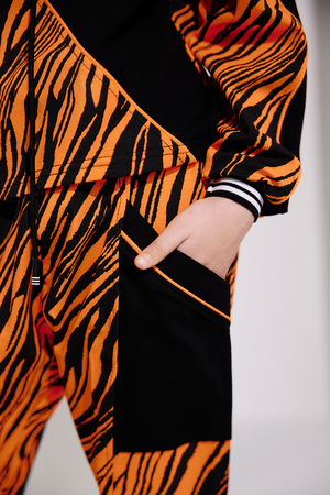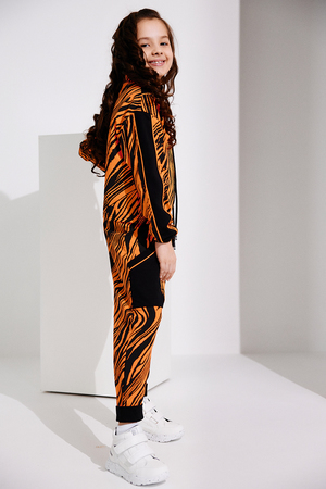 Стильный детский костюм(весна-лето) имеет интересный крой и сочетание цветов. Костюм представлен в ярких расцветках, создан для детей младшего и школьного возраста, который будет удобен в любом виде спорта, в путешествиях и ежедневной носке. Комплект состоит из свитшота и спортивных штанов джоггеров. Свитшот укороченный, свободного кроя с длинными рукавами и трикотажными манжетами из рибаны. Дополнен воротником хомутом, который можно затянуть с помощью шнурка. Полочка и рукава свитшота оформлены ярким декоративным кантом. Штаны джоггеры свободного кроя на широком эластичном поясе из рибаны имеют с 2-х сторон вместительные карманы обработанные обтачками с ярким кантом, низки брюк оформлены манжетами из футера 2-х нитки. Свитшот и брюки возможно носить отдельно, сочетая с футболкой, штанами или джинсами.