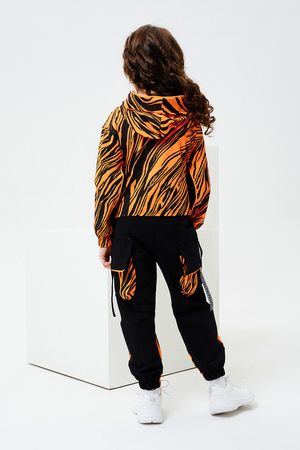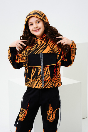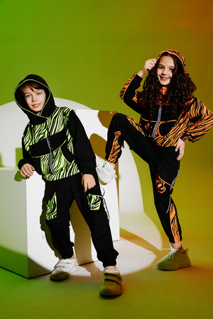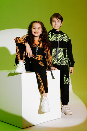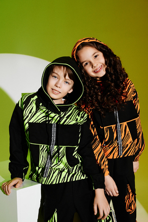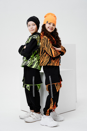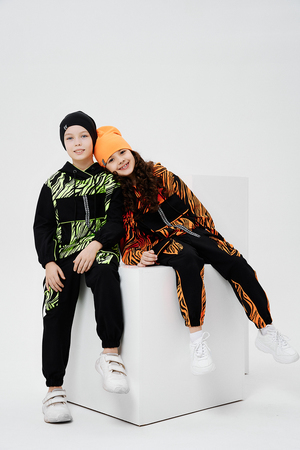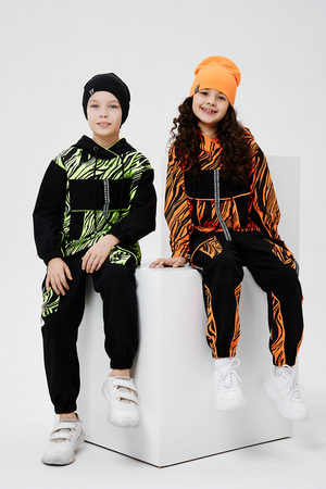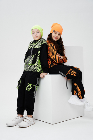 Модный детский спортивный комплект имеет интересный крой и сочетание цветов. Костюм двойка представлен в ярких цветах, создан для детей младшего и школьного возраста, который будет удобен в любом виде спорта, в путешествии и ежедневной носке. Толстовка свободного кроя с длинными двухцветными рукавами на резинке, дополнена объёмным капюшоном со шнурком, также есть большой нагрудный карман с клапаном и интересным модным декором в виде ленты с надписью. Штаны(джоггеры) свободного кроя на эластичном поясе, с большими накладными карманами с клапанами по бокам, также с декором в виде ленты с надписью, низки брюк собраны на эластичную широкую резинку. Дизайн костюма дополнен ярким неоновым кантом из кашкорсе. Рекомендована деликатная стирка не выше 30 градусов.