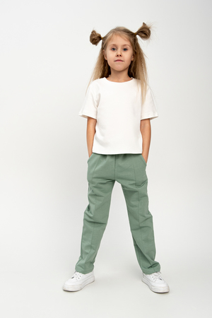 Брюки сшиты из футера, процентное содержания хлопка в котором составляет 90%. Ткань приятная телу и не деформируется после первой стирки. Брюки идеально подойдут в качестве составного элемента образа на прогулку, либо образа для занятий спортом.