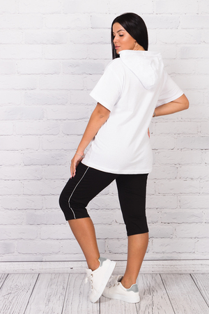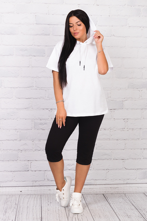 Бриджи женские классические, из хлопка с эластаном, длиной ниже колена, плотно облегающие фигуру. Верх бридж на резинке шириной 2,0 см. Бриджи без карманов и без манжет. В боковых швах канты контрастного цвета.