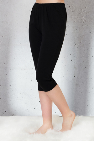 Бриджи женские классические из хлопка с эластаном, длиной ниже колена, плотно облегающие фигуру. Верх бриджей на резинке шириной 2,0 см. Бриджи без карманов и без манжет.