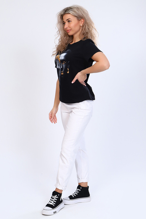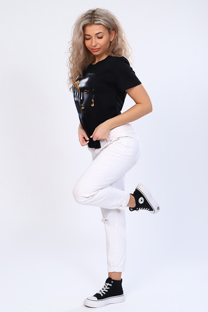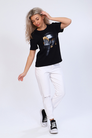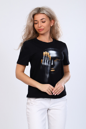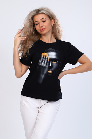 Футболка классического фасона, прямого кроя, с коротким рукавом и округлым вырезом. Декорирована принтом. Универсальная модель футболки отлично подойдет для любого образа и станет необходимой вещью в вашем гардеробе. Ткань кулирка пенье, плотность 160 г.