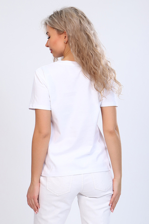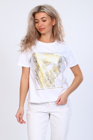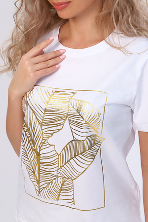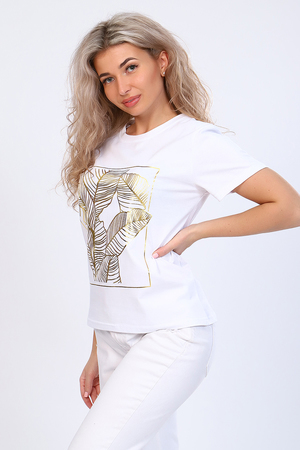 Футболка классического фасона, прямого кроя, с коротким рукавом и округлым вырезом. Декорирована принтом. Универсальная модель футболки отлично подойдет для любого образа и станет необходимой вещью в вашем гардеробе. Ткань кулирка пенье, плотность 160 г.