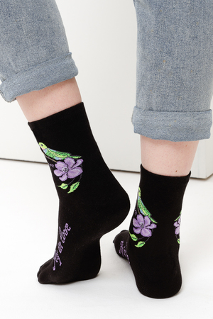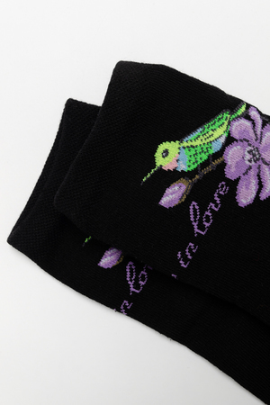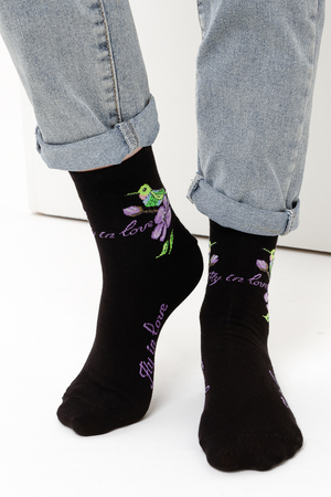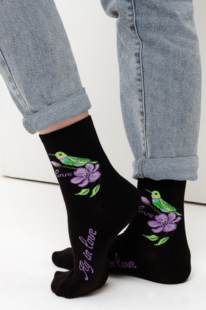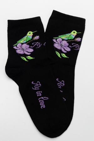 Красивые женские носочки с изображением колибри и надписью. В упаковке 1 пара