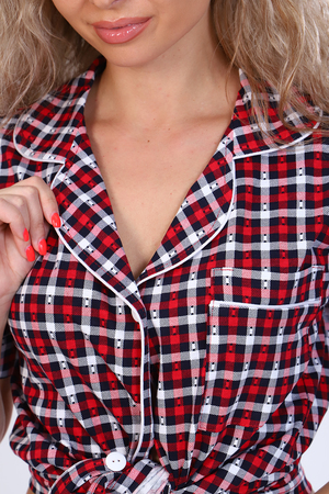 Пижама женская с кантом, на пуговках. Очень модно и красиво смотрится с отделочным кантом по воротнику, подбортам. Карман накладной с кантиком придает красивый вид. Шортики с кантом на манжете. Пижама подойдет как для отдыха в приятной компании, так и для сна.