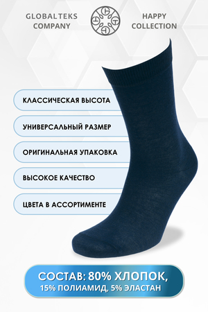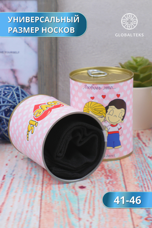 Внутри банки носки мужские 1 пара, состав 80% хлопок, 15% полиамид, 5% лайкра, универсального размера 41-46. Использование высококачественного материала позволяет коже "дышать", согревает, а добавление небольшого количества синтетических нитей делает носки долговечней.
