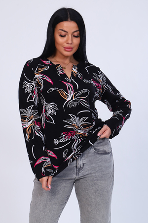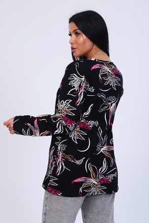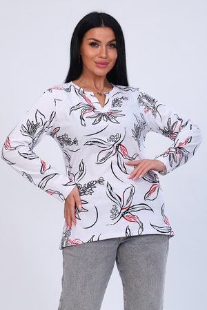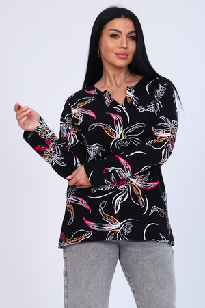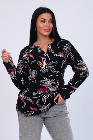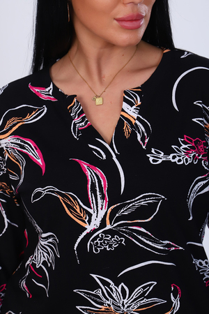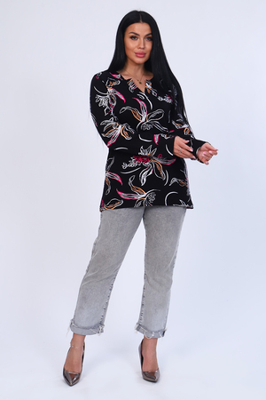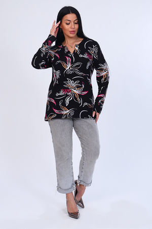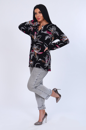 Туника женская с длинным рукавом из 100% хлопка. Оригинальная горловина с планкой без пуговиц. Низ изделия ассиметричен.