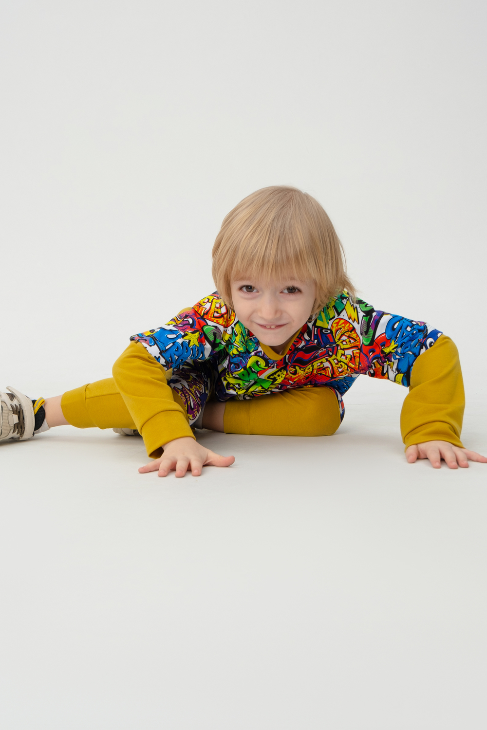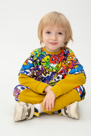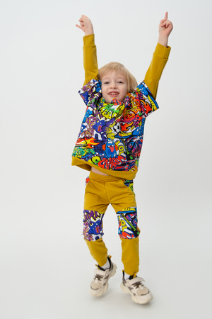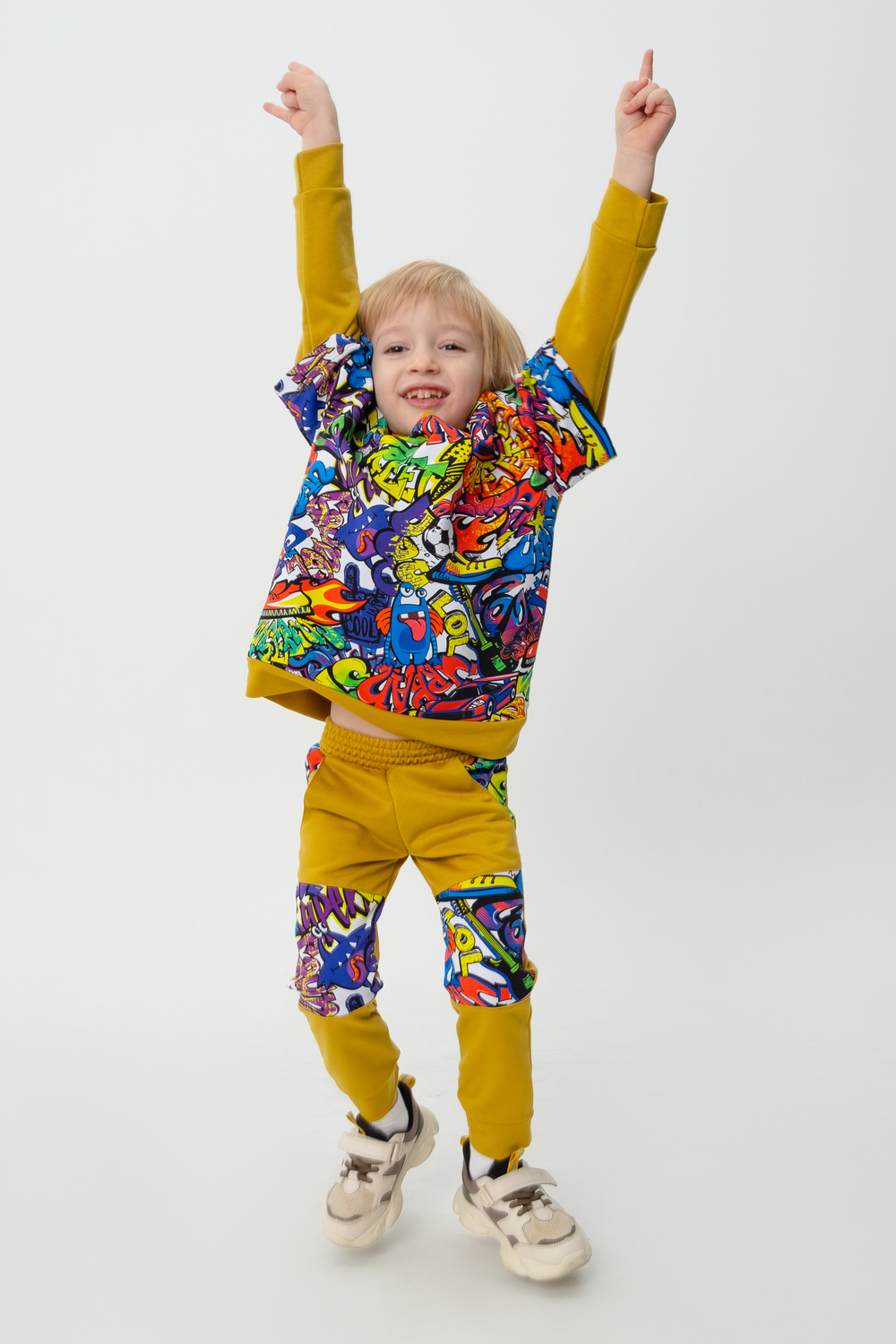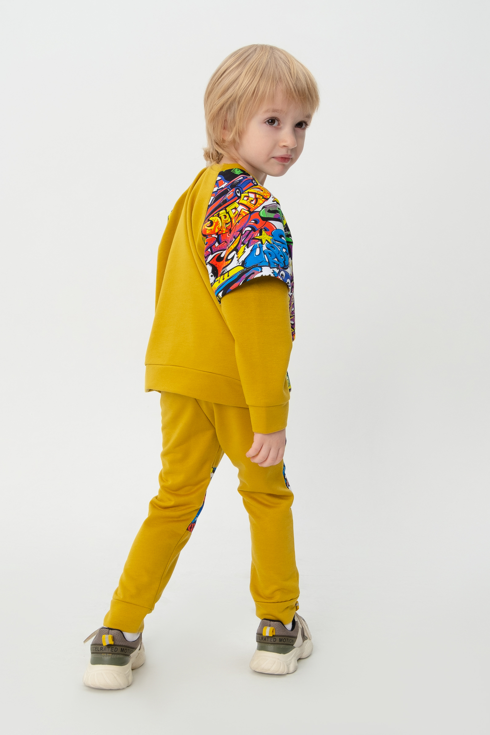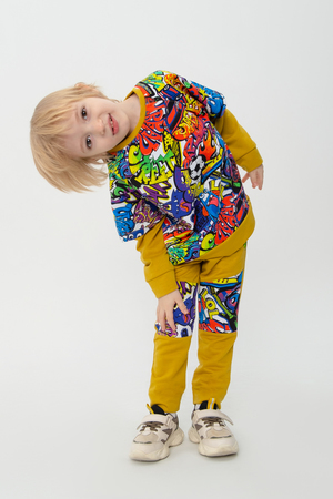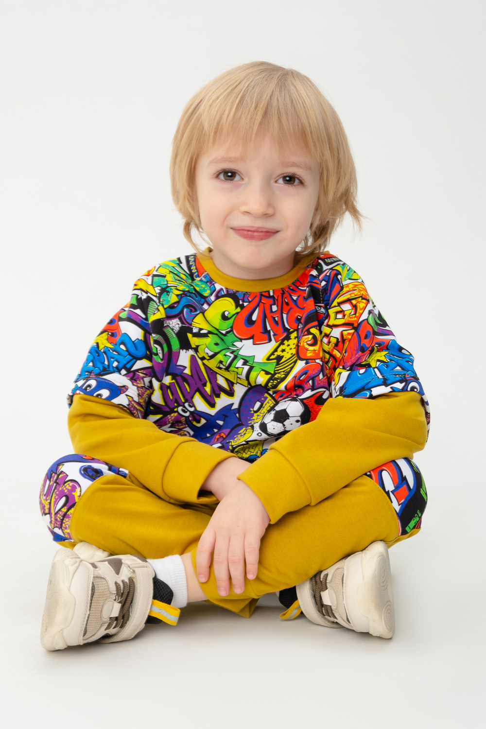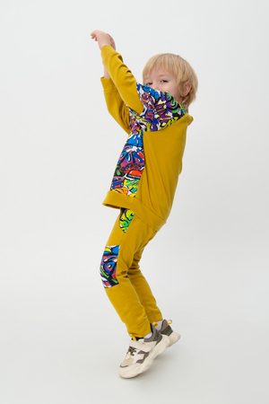 Костюм Гаити представляет собой комбинацию из свитшота и брюк. Сшит из первоклассного футера. Ваш сын по достоинству оценит яркие цвета, в которые окрашен свитшот. Брюки же могут стать отличным составным элементом для будущих образов.