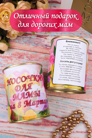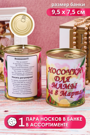 Искать подарок женщине - настоящий стресс для мужчины. Носки в банке это идеальный подарок с юмором для любимой, мамы или подруги. Носочки созданы специально для подарка на 8 марта, 14 февраля, день рождения или просто порадовать. Этот сувенир не останется без внимания, ведь подарки должны радовать, вызывать улыбку, и быть уютными!