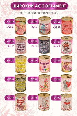 Искать подарок женщине - настоящий стресс для мужчины. Носки в банке это идеальный подарок с юмором для любимой, мамы или подруги. Носочки созданы специально для подарка на 8 марта, 14 февраля, день рождения или просто порадовать. Этот сувенир не останется без внимания, ведь подарки должны радовать, вызывать улыбку, и быть уютными!