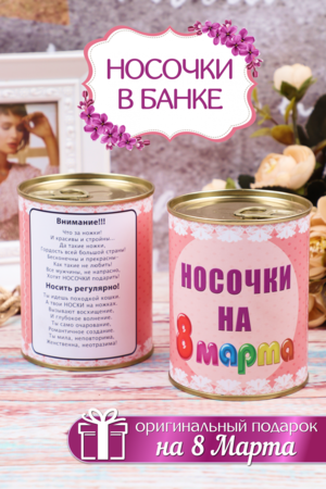Искать подарок женщине - настоящий стресс для мужчины. Носки в банке это идеальный подарок с юмором для любимой, мамы или подруги. Носочки созданы специально для подарка на 8 марта, 14 февраля, день рождения или просто порадовать. Этот сувенир не останется без внимания, ведь подарки должны радовать, вызывать улыбку, и быть уютными!