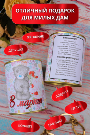 Искать подарок женщине - настоящий стресс для мужчины. Носки в банке это идеальный подарок с юмором для любимой, мамы или подруги. Носочки созданы специально для подарка на 8 марта, 14 февраля, день рождения или просто порадовать. Этот сувенир не останется без внимания, ведь подарки должны радовать, вызывать улыбку, и быть уютными!