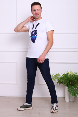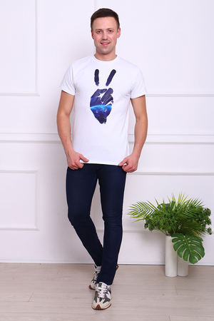 Футболка мужская с молодёжным принтом из мягкого хлопкового трикотажа. Футболка прямого кроя, круглая горловина обработана эластичной рибаной, втачной короткий рукав.