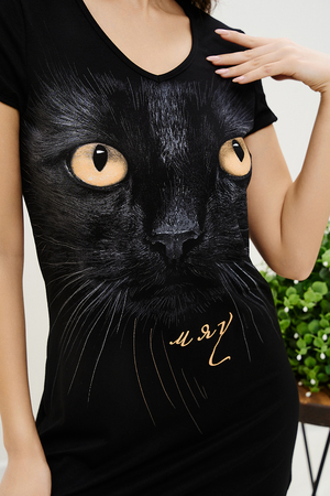 Туника полуприталенного силуэта, с V-образной горловиной, с разрезами в нижней части боковых швов. Рукав втачной, короткий, с декоративным вырезом. Горловина и рукава обработаны бейкой из основного полотна.