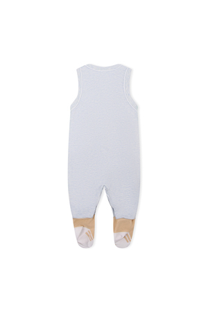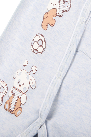 Полукомбинезон для мальчика. Изготовлен из 100% хлопка, лицевая сторона изделия с не большим начесом. Застежки - кнопки по всей длине изделия. На ножках пришиты носочки.