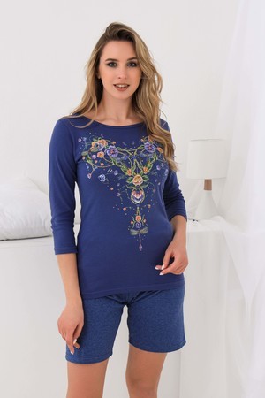 Домашний костюм выполнен из комфортной и приятной к телу ткани. Кофта в обтяжку из 100% хлопка интерлок-пенье. Шорты изготовлены из ткани, в состав которых входит п/э, благодаря чему они не растягиваются при эксплуатации. Авторский принт- "Стрекозы", в крылышках золотой глиттер. Пояс выполнен на поясной машине. Носите с удовольствием!