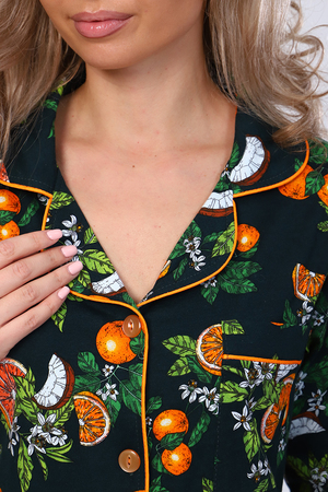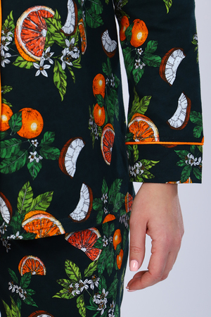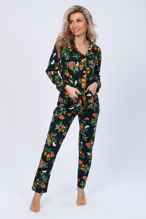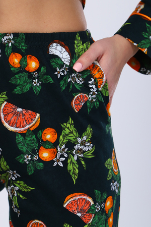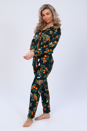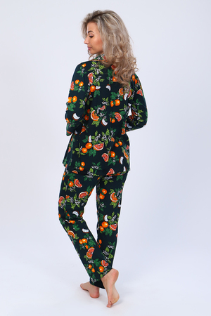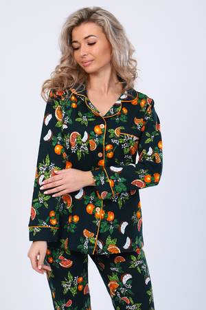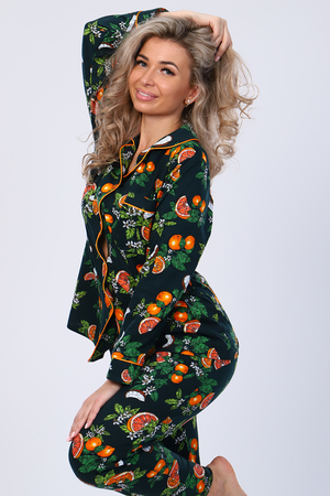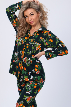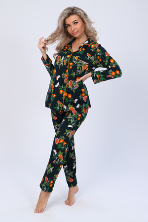Кофта с длинным рукавом, на пуговицах и карманом на груди. Атласный кант по подборту, воротнику, карману и манжету придаст нарядный вид. Брюки прямые с карманом. Пижама на любое время года. Отлично подойдет как и домашний костюм, так и для сна.