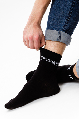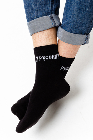 Мужские носки с надписью в верхней части "Я русский". В комплекте 1 пара.