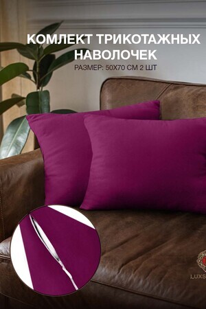 Комплект наволочек трикотажных на молнии включает в себя две наволочки, изготовлены из натурального и экологически чистого 100% хлопка. В наволочку вшита евро-молния с бельевым замочком, которая абсолютно незаметна снаружи. Наволочки не требуют глажки, широкая цветовая гамма позволяет скомбинировать комплект на ваш вкус, при правильном уходе ткань не теряет насыщенности цвета после множества стирок и не образует катышков. Рекомендуем стирать с застегнутой молнией. Под наволочки можно подобрать в цвет трикотажную простынь на резинке.