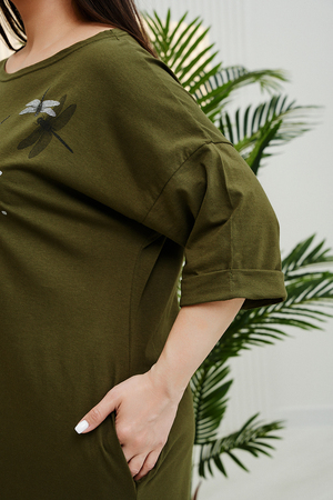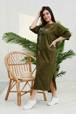Комментарий: Платье красивое, на фигуре сидит как и хотела, не в обтяжку. Брала 52 размер. подходит даже если носить с кросовками -