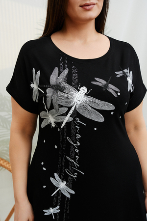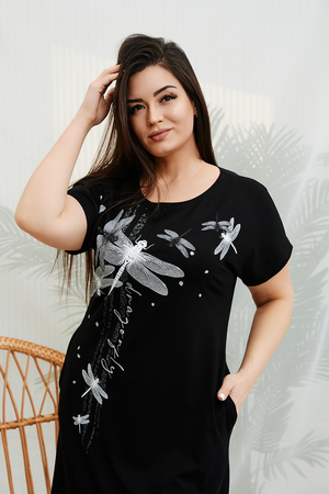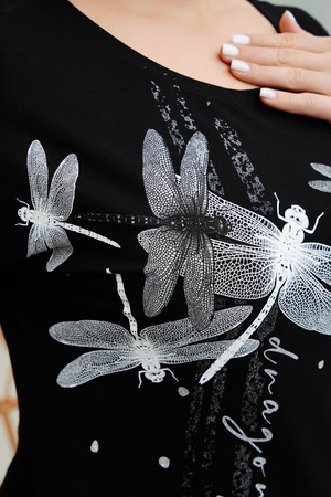 Светлана Александровна08.05.2023 в 13:59Ткань мягкая, На принте серебристые буквы и полоски, а стрекозы - белые. Очень красиво. Платье не сиреневый, а голубое, цвет приятный