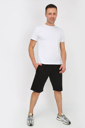 Мужские спортивные, трикотажные шорты, прямого кроя, длина выше колен. Пояс на резинке, по бокам два кармана с отрезным бочком. Подойдут для повседневной носки, спорта. Ткань 2-х нитка компакт пенье.