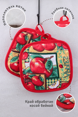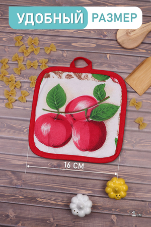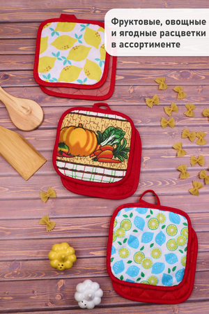 Прихватки кухонные подходят для безопасной работы с горячей посудой. Состав: 50% хлопок, 50% полиэстер; комплектация по 2 шт. в пакете Расцветки в ассортименте. Удобный размер 16х16 см (±1см). Разнообразные рисунки добавят яркости на Вашу кухню. Прихватки кухонные подходят для безопасной работы с горячей посудой.