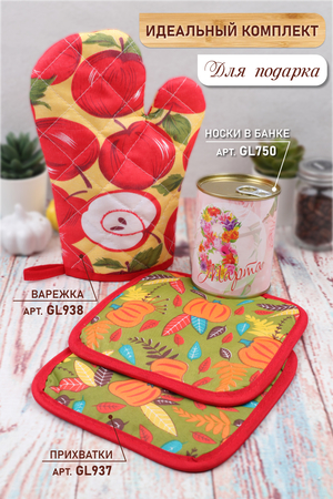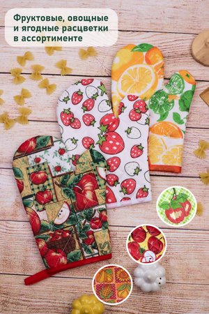 Прихватка - варежка подходит для безопасной работы с горячей посудой. Состав: 50% хлопок, 50% полиэстер. Расцветки в ассортименте. Удобный размер - подойдет для женской руки. Разнообразные рисунки добавят яркости на Вашу кухню!
