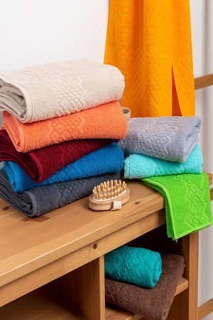 Полотенце махровое гладкокрашеное отлично впитывает влагу, не линяет и не садится при стирке. Плотность 305 г/м2, 100% хлопок. Рекомендуем стирать при 40 градусах порошком для цветного белья и использовать кондиционер.
