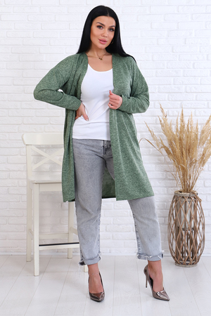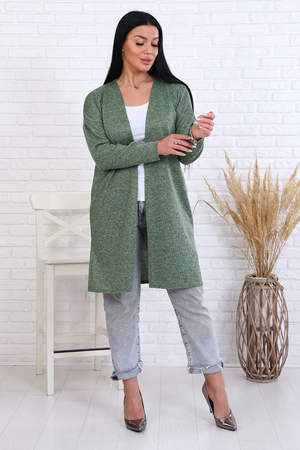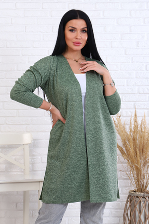 Модель свободного силуэта длиной до колена, по бокам разрезы, рукав длинный, выполнен из вязаного трикотажного материала Сандра. Кардиган прекрасно впишется в гардероб любой модницы, его можно сочетать с любыми вещами, идеален для прогулок, в поездке, в офисе, сохраняет тепло, не мнётся и не колется. Длина рукава в замерах указана от горловины.