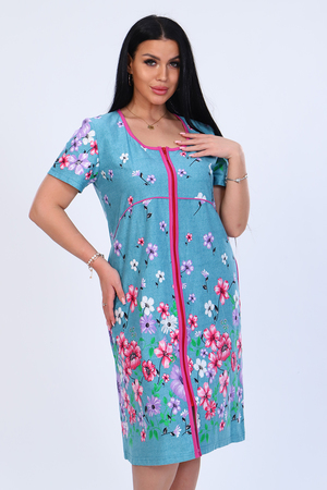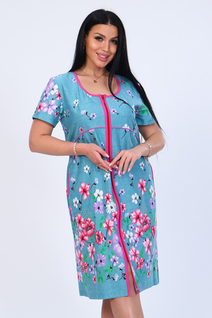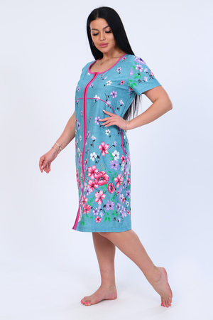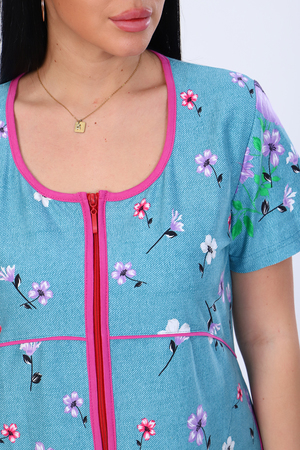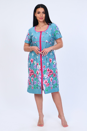 Женский халат приталенного силуэта на молнии. Рукав короткий. Кокетка выделена кантом.