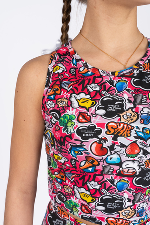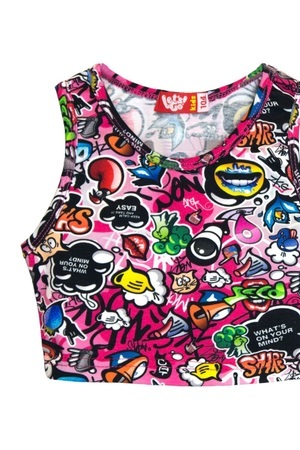Топ для девочки - это тренд и современный предмет гардероба. Яркий и бунтарский принт притягивает внимание, сделав самой заметной девушкой. Изделие выполнено из мягкой, облегающей и эластичной ткани, которая легко подстраивается под фигуру. Идеально подойдет для занятий спортом, не стесняет движений, хорошо тянется. Облегающий топ идеально подойдет для прогулок, фитнеса, дома, танцев и для повседневной носки. Приталенный силуэт выгодно подчеркивает фигуру. Горловина и пройма окантованы.