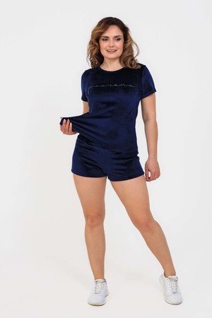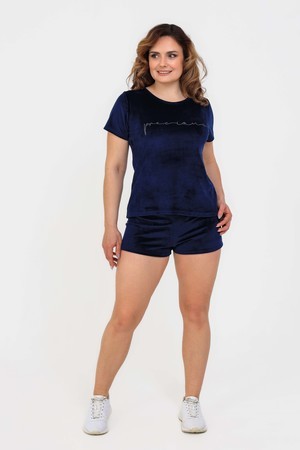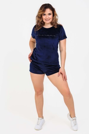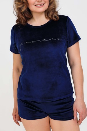 Костюм женский из велюра. В комплект входят: футболка с коротким рукавом с округлым вырезом горловины и шорты прямого покроя с широким поясом на резинке. Мягкий трикотажный комплект для женщин Российского производства. Стильный костюм из стрейч - велюра для женщин представлен в широкой размерной сетке: от маленького 42 размера до 52 размера. Удобный домашний велюровый комплект не сковывает движений, что делает его универсальной одеждой, которая подойдет на любую фигуру как для худеньких, стройных, так и для пышных девушек и женщин. Костюм двойка женский подходит на любой рост: для высоких и для невысоких. Однотонный костюм с шортами выполнен в спокойных и практичных темных тонах. Бархатный комплект из трикотажной ткани не сковывает движения, скрывает недостатки и подчеркивает достоинства фигуры. Классические прямые шорты без манжета, имеют комфортную посадку. Эластичная резинка на шортах не давит, не перетягивает талию, не скручивается. Текстильный костюм из велюра не мнется, не дает усадку после стирок, не теряет цвет, сохраняет форму и внешний вид. Молодежный комплект подходит для девочек, подростков, молодых женщин, а также для женщин любого возраста, желающих модно выглядеть в домашней обстановке. Легкий летний спортивный костюм позволяет коже дышать за счет хорошей воздухопроницаемости, а гипоаллергенная ткань высокого качества долго не потеряет своих характеристик. Шорты и футболку по Вашему желанию по отдельности можно комбинировать с другими предметами одежды. Костюм отлично зарекомендовал себя в эксплуатации, он будет долго радовать Вас при условии соблюдения рекомендаций по уходу за изделием. Тонкий повседневный набор дополнит Ваш домашний гардероб и будет комфортной альтернативой домашнему платью, халату, туники. Размер на модели 48, параметры 105-86-98/169.