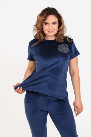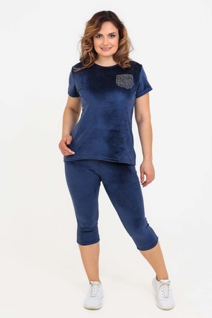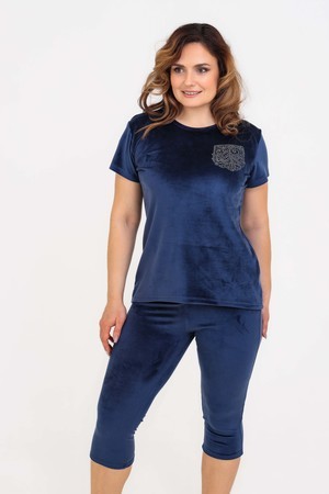 Костюм женский из велюра. В комплект входят:- футболка с коротким рукавом с округлым вырезом горловины и леггинсы. Мягкий трикотажный комплект для женщин Российского производства. Стильный костюм из стрейч - велюра для женщин представлен в широкой размерной сетке: от маленького 42 размера до 52 размера. Удобный домашний велюровый комплект не сковывает движений, что делает его универсальной одеждой, которая подойдет на любую фигуру как для худеньких, стройных, так и для пышных девушек и женщин. Костюм двойка женский подходит на любой рост: для высоких и для невысоких. Однотонный костюм с шортами выполнен в спокойных и практичных темных тонах. Бархатный комплект из трикотажной ткани не сковывает движения, скрывает недостатки и подчеркивает достоинства фигуры. Костюм из велюра не мнется, не дает усадку после стирок, не теряет цвет, сохраняет форму и внешний вид. Молодежный комплект подходит для девочек, подростков, молодых женщин, а также для женщин любого возраста, желающих модно выглядеть в домашней обстановке. Легкий летний спортивный костюм позволяет коже дышать за счет хорошей воздухопроницаемости, а гипоаллергенная ткань высокого качества долго не потеряет своих характеристик. Леггинсы и футболку по Вашему желанию по отдельности можно комбинировать с другими предметами одежды. Костюм отлично зарекомендовал себя в эксплуатации, он будет долго радовать Вас при условии соблюдения рекомендаций по уходу за изделием. Размер на модели 48, параметры 105-86-98/169.