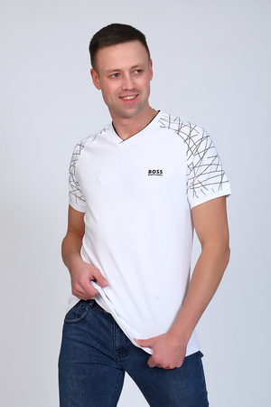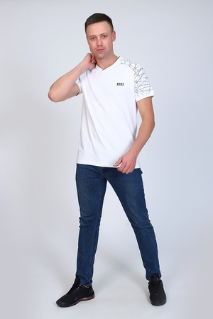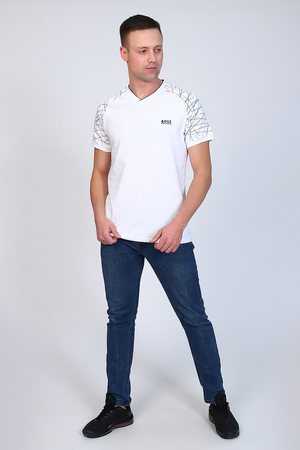 Футболка мужская хлопковая с добавлением лайкры с V-образным вырезом в пяти цветах. Слева на полочке и рукавах печать. Добавление лайкры повышает износоустойчивость изделия. Футболка незаменимая для отдыха, занятий спортом, работе на свежем воздухе и прогулках.